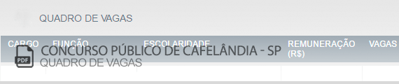 Clique abaixo para exibir o quadro de vagas do Concurso da Prefeitura de Cafelândia – SP (Edital 001/2020)