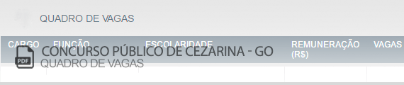 Clique abaixo para exibir o quadro de vagas do Concurso da Prefeitura de Cezarina – GO (Edital 001/2020)
