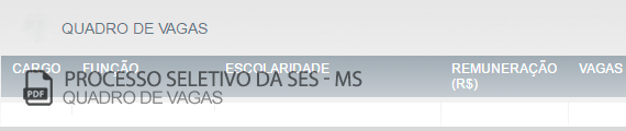 Clique abaixo para exibir o quadro de vagas do Processo Seletivo da SES – MS (Edital 001/2020)