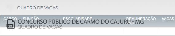 Clique abaixo para exibir o quadro de vagas do Concurso da Prefeitura de Carmo do Cajuru – MG (Edital 001/2021)