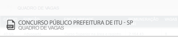 Estão abertas as inscrições para Concurso Público que oferece 50 vagas para trabalhar em diversas áreas da Prefeitura de Itu – SP. Confira mais detalhes sobre a oportunidade.