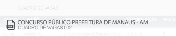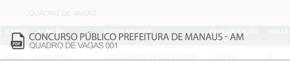 Estão abertas as inscrições para Concurso Público da Prefeitura Municipal de Manaus – AM, com a finalidade de contratar profissionais para as áreas da saúde, administrativa, tecnologia, entre outras. Confira todos os detalhes abaixo!
