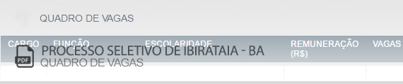 Clique abaixo para exibir o quadro de vagas do Processo Seletivo de Ibirataia – BA (Edital 001/2021)