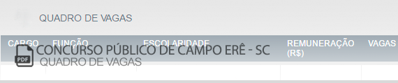 Clique abaixo para exibir o quadro de vagas do Concurso Público de Campo Erê – SC (Edital 001/2023)