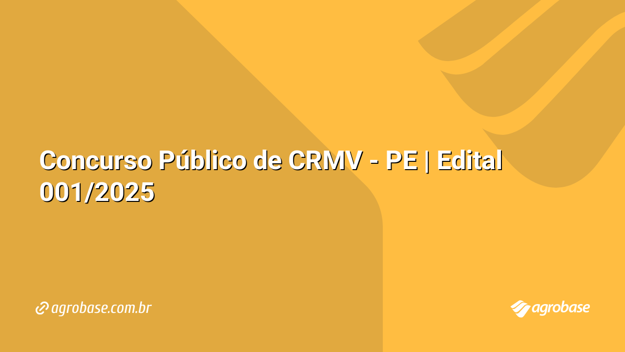 O Conselho Regional de Medicina Veterinária do Estado do Pernambuco (CRMV - PE) divulga Concurso Público, destinado a preencher três vagas para profissionais de níveis médio, técnico e superior.