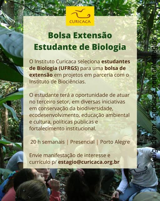 Se tens interesse em ser bolsista em projetos de extensão realizado na parceria entre o Instituto Curicaca e o Instituto de Biociências da UFRGS, envie uma manifestação de interesse e o currículo para o e-mail [email protected].