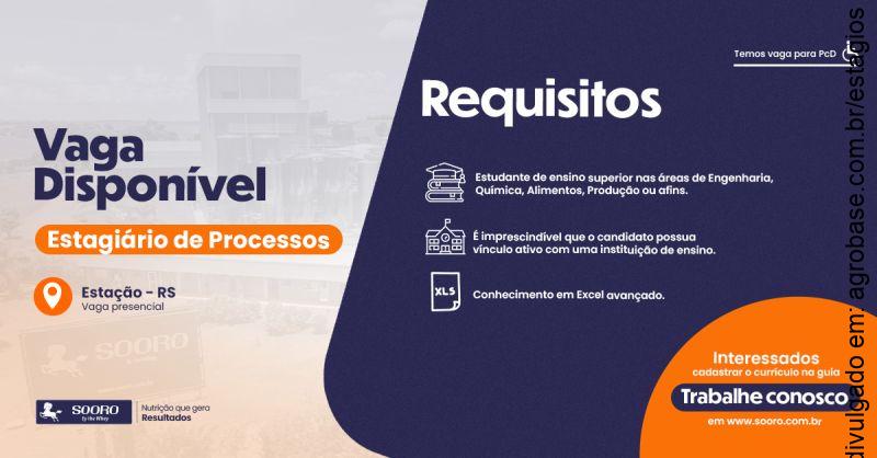 Conhecimento básico em rotinas laboratoriais e operações unitárias será considerado um diferencial.