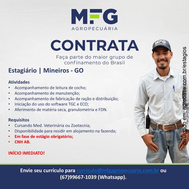 Faça parte do nosso time! Confira a vaga disponível na nossa unidade MFG. Faça parte do maior grupo de confinamento do Brasil.