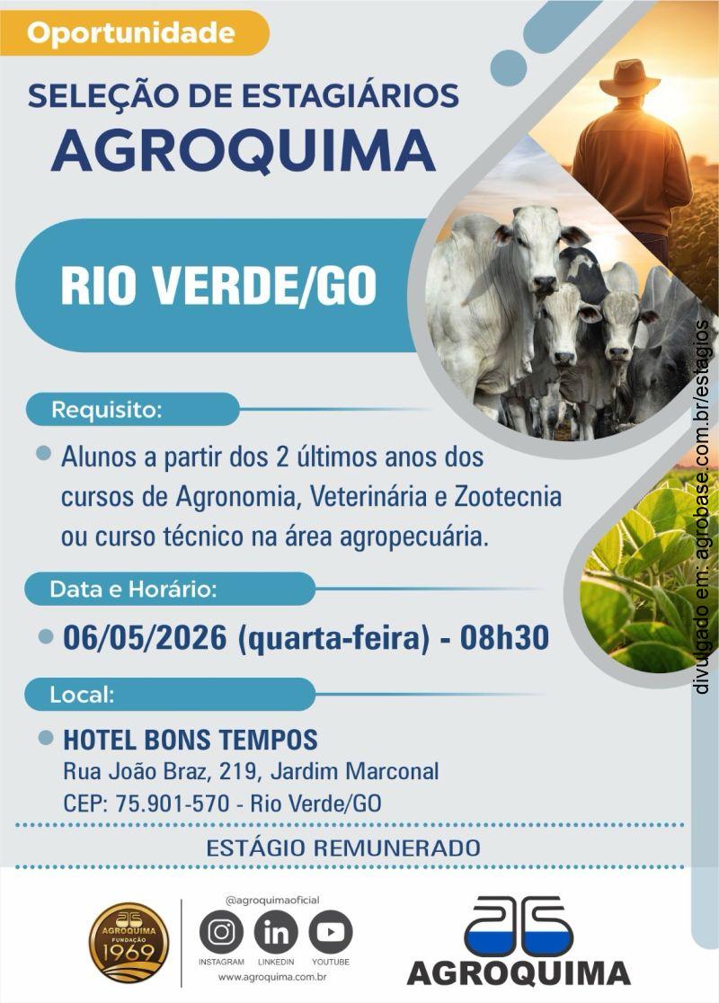 A Agroquima está com processo seletivo aberto em Rio Verde/GO para estudantes que querem crescer no agronegócio!