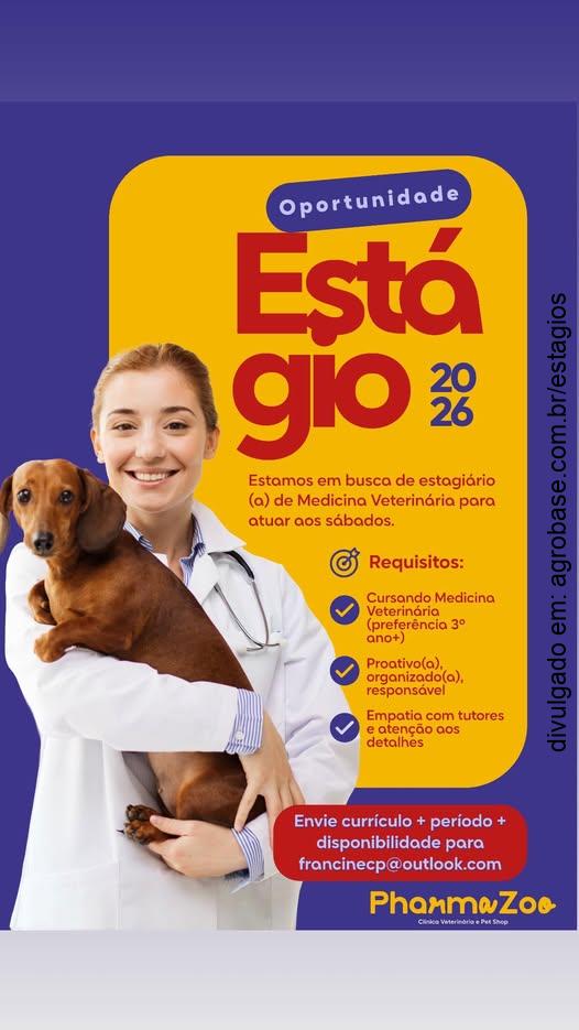 Pharmazoo Policlínica Veterinária está em busca de estagiário (a) de Medicina Veterinária para atuar aos sábados.