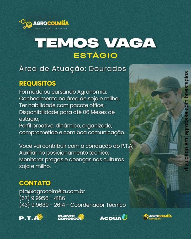 A Agrocolmeia está em busca de jovens talentos da Agronomia que queiram desenvolver sua carreira no campo, com aprendizado prático, acompanhamento técnico e contato direto com produtores. Se você é apaixonado pelo agro, gosta de desafios e quer evoluir profissionalmente, essa oportunidade é para você!