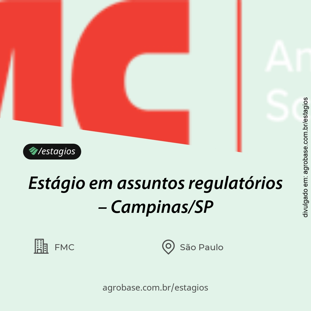 - Interesse em atuar com assuntos regulatórios no setor agroquímico