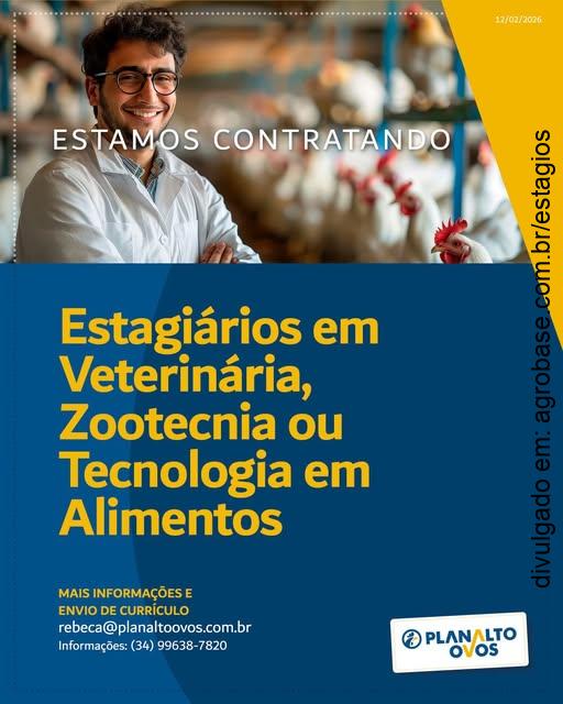 Venha trabalhar com a gente! Vaga para estagiários em medicina veterinária, zootecnia ou tecnologia em alimentos – Uberlândia/MG.