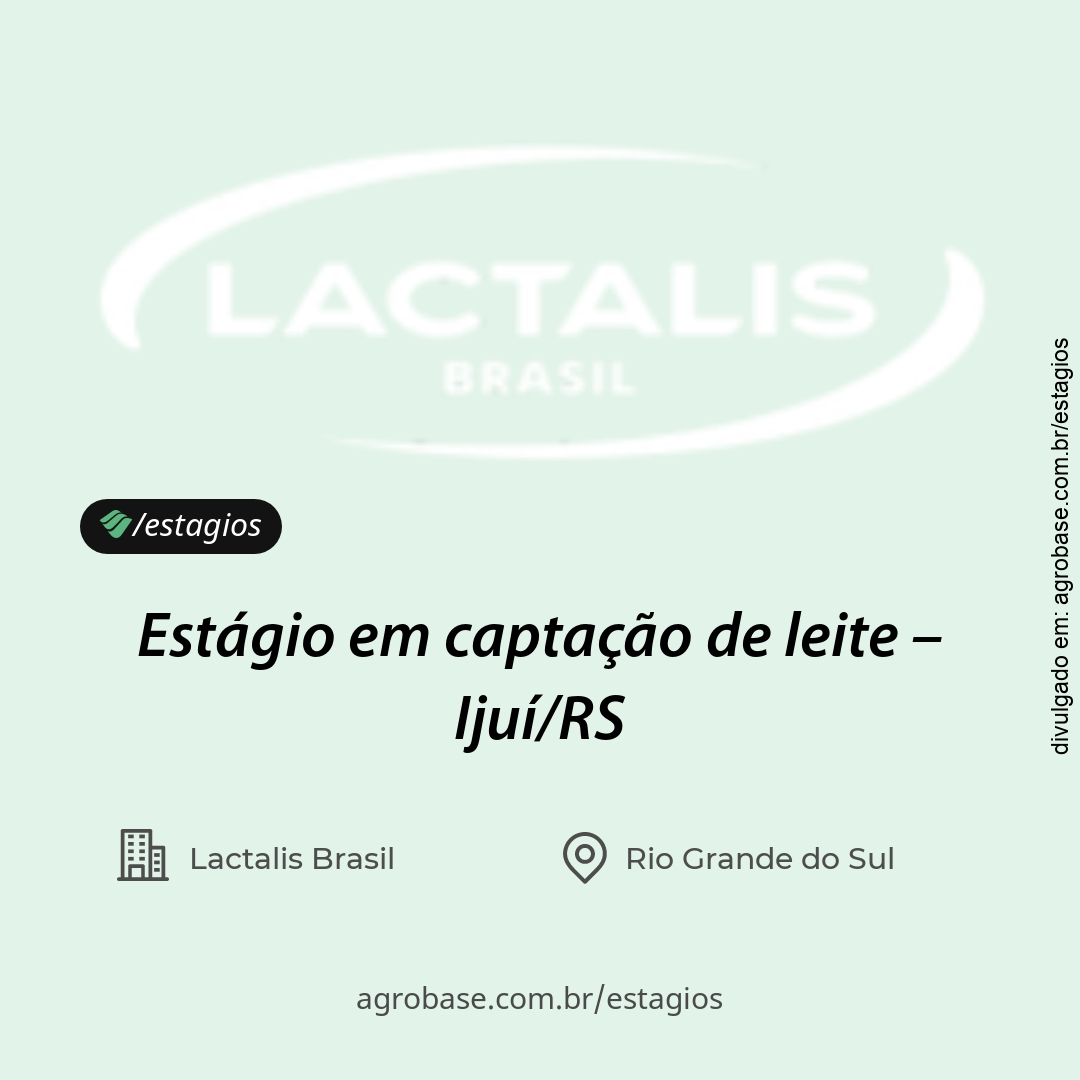 A Lactalis Brasil está em busca de um estagiário para apoiar técnicos de captação em visitas a produtores e atividades de campo.