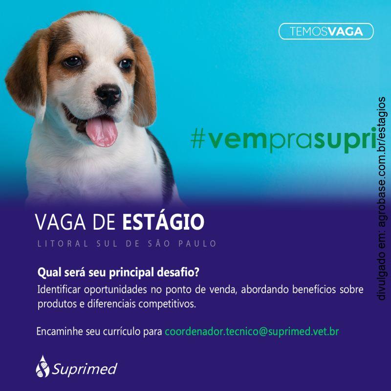 Buscamos um(a) estudante entusiasmado(a) para atuar na região do Litoral Sul de São Paulo. Principais responsabilidades incluem atuar em pontos de venda, abordar tutores e influenciadores, apoiar treinamentos, realizar pesquisas, e gerenciar estoque e posicionamento de produtos.