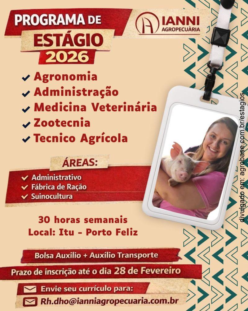 Agrobase / Estágios / Estágio Ianni Agropecuária – Itu e Porto Feliz/SP