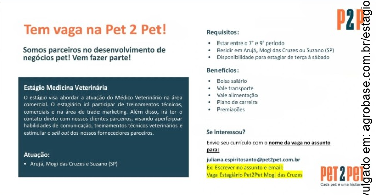 Agrobase / Estágios / Estágio medicina veterinária – Alto Tietê/SP