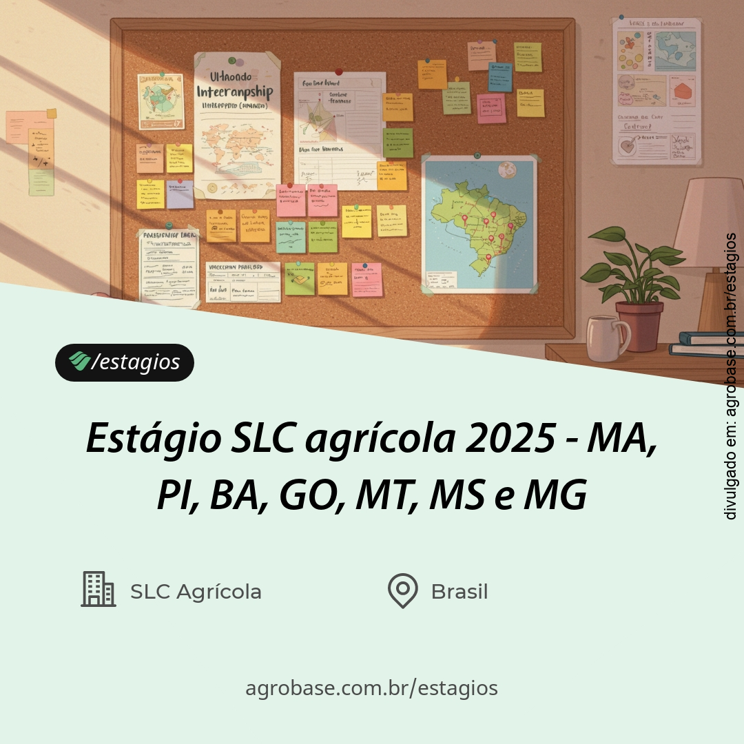 - Buscamos uma pessoa estagiária versátil, com capacidade analítica e pensamento crítico para entender e solucionar desafios práticos no campo. Deve ser uma pessoa proativa, resiliente e adaptável, pronto para atuar em diferentes áreas das fazendas da SLC Agrícola. A comunicação clara e o interesse genuíno pelo desenvolvimento contínuo são essenciais para integrar equipes multidisciplinares e crescer dentro da companhia.