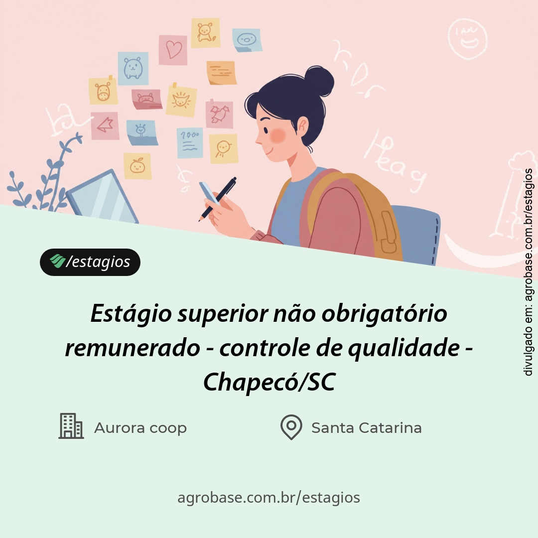 - Necessário estar cursando nível superior em engenharia química, engenharia de alimentos, tecnólogo em alimentos, medicina veterinária e áreas afins.