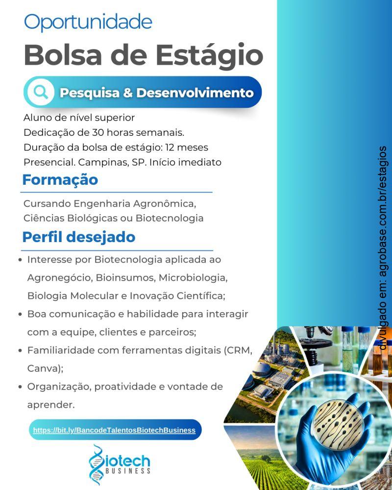 Estágio em tecnologia (laboratório) – Orindiúva/SP