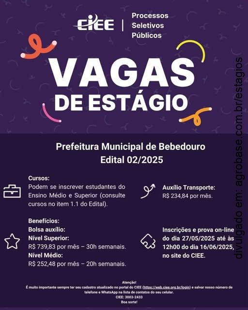 14 de novembro Estágio não obrigatório remunerado (produtividade) – Guatambú/SC Aurora Coop Santa Catarina