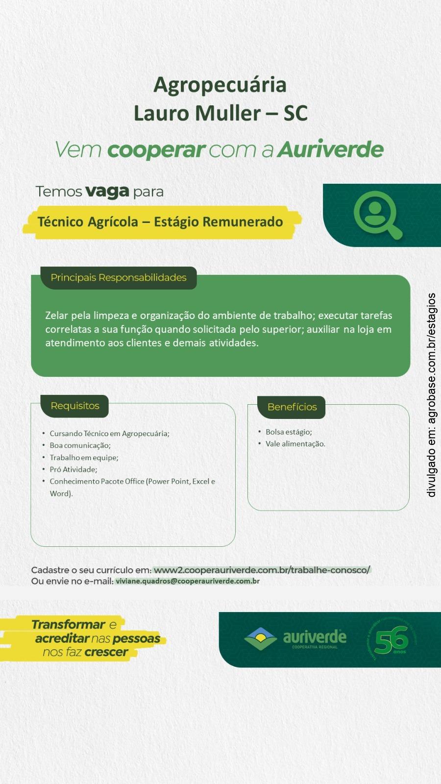 15 de julho Estágio para encarregado de qualidade e excelência operacional – Barra do Ribeiro/RS Tecnoplanta Rio Grande do Sul