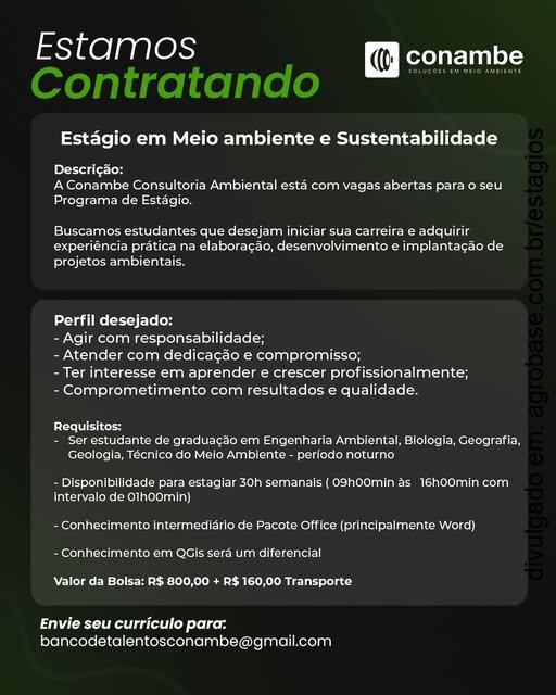 22 de setembro Estágio de nível técnico: técnicos florestal, agrícola, agropecuário, meio ambiente – Belo Oriente/MG Cenibra Minas Gerais
