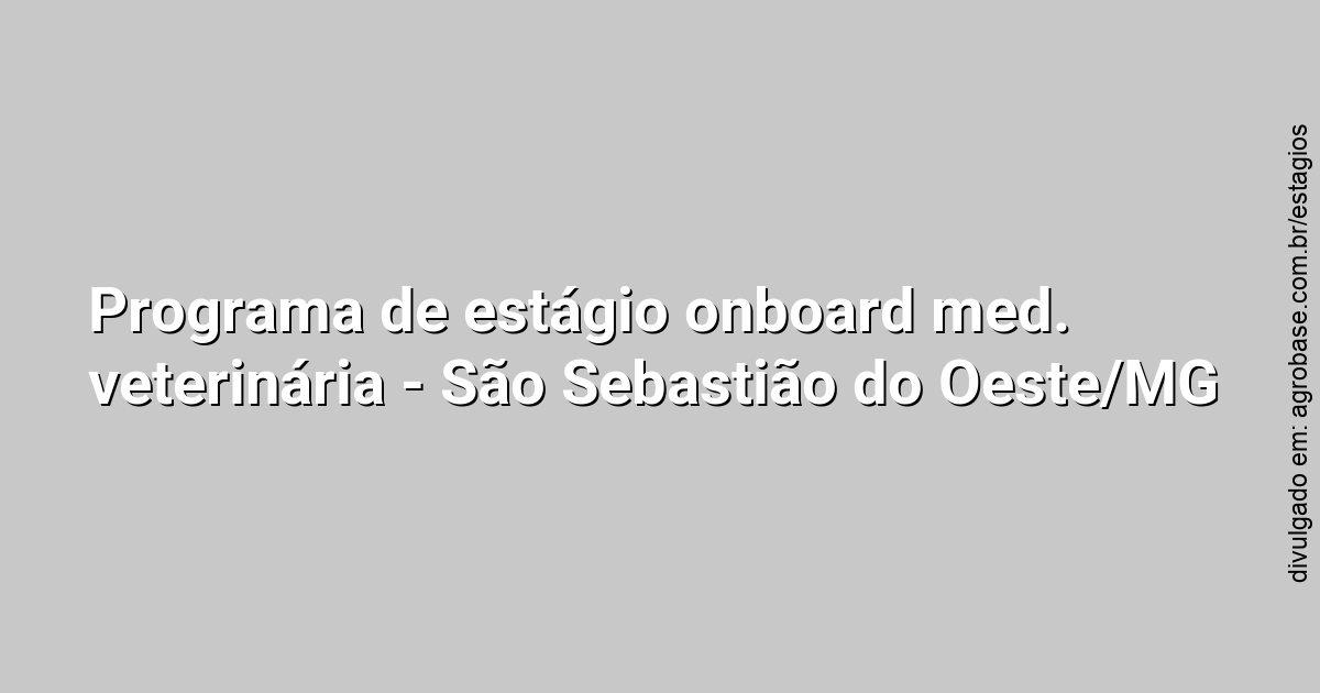 11 de dezembro 02 vagas de estágio em medicina veterinária – Rio de Janeiro/RJ Silvet e ProSilvestres Rio de Janeiro