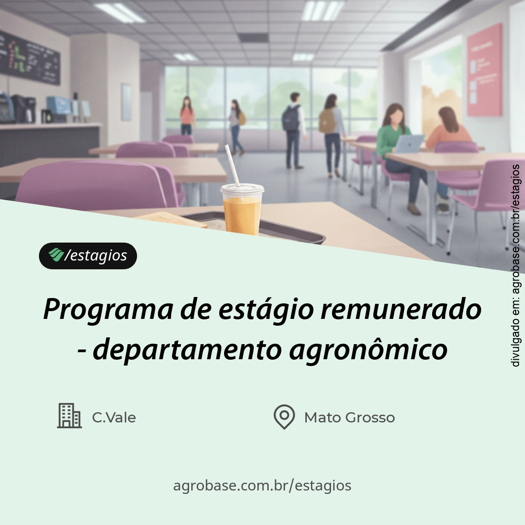 - Disponibilidade para estagiar no estado do Mato Grosso e Rio Grande do Sul.