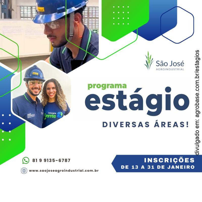 A São José, uma das melhores empresas do setor sucroenergético, está em busca de jovens talentos que desejam fazer a vida mais doce e contribuir para o desenvolvimento sustentável do país. Durante o estágio, você terá a oportunidade de trabalhar em projetos desafiadores, aprender com profissionais experientes e vivenciar a rotina de uma das maiores empresas do setor.